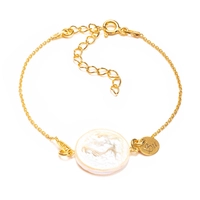 Bransoletka klasyczne zapięcie z kamienia księżycowego, chalcedonu i pereł - złoto