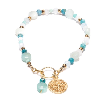Bransoletka klasyczne zapięcie z amazonitu, apatytu i perły naturalnej - zloto