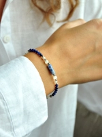 Bransoletka klasyczne zapięcie z pereł i larimaru - złoto