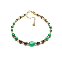 Bransoletka klasyczne zapięcie z malachitu, onyksu zielonego i czarnego turmalinu - złoto