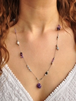 Choker z ametystu, chalcedonu i kamienia księżycowego - srebrny