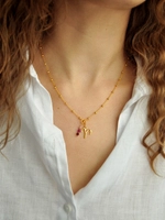 Naszyjnik z zapięciem z przodu z granatu i kamienia słonecznego - złoto