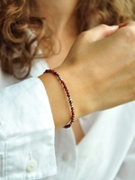 Bransoletka na nici jedwabnej z granatu - złoto