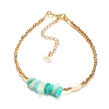 Bransoletka klasyczne zapięcie z pereł i amazonitu - złoto