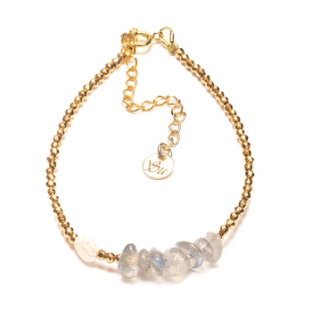 Bransoletka klasyczne zapięcie z labradorytu i pereł - złoto