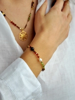 Bransoletka Azja - z granatu, oliwinu, tygrysiego oka, karneolu - złoto