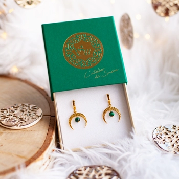 Kolczyki SU koła zakręcone granat, czarny turmalin złoty
