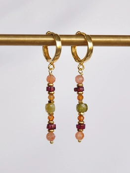 Kolczyki na biglu angielskim, z kamienia słonecznego oraz trzech kolorów granatu - złoto