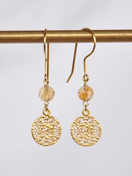 Kolczyki Mandala z cytrynem - złoto