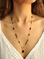 Naszyjnik regulowany BALI z czarnego turmalinu, jaspisu i granatu- złoty