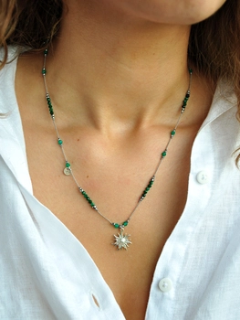 Naszyjnik z zielonego awenturynu, apatytu, amazonitu i malachitu - złoty