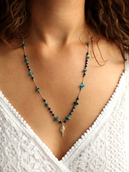 Naszyjnik regulowany z sodalitu i apatytu - srebrny
