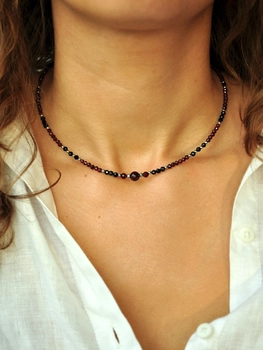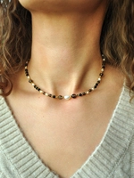 Naszyjnik z granatu, czarnego turmalinu i onyksu - złoty