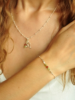 Bransoletka klasyczne zapięcie z granatu i kamienia słonecznego - złoto