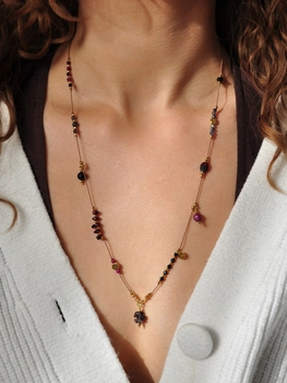 Naszyjnik BALI z granatu, rubinu, szafiru, iolitu i czarnego turmalinu - złoty