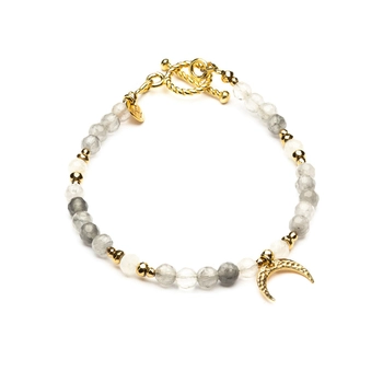 Bransoletka zapięcie toggle z kwarcu szarego i kamienia księżycowego - złoto