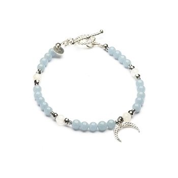 Bransoletka z zapięciem toggle z angelitu i kamienia księżycowego - srebro