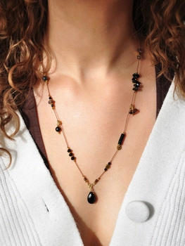 Naszyjnik z granatu, czarnego turmalinu i onyksu - złoty