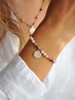 Naszyjnik regulowany z różowego turmalinu, rubinu i opalu peruwiańskiego - srebrny