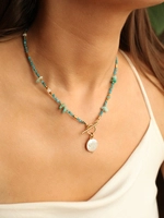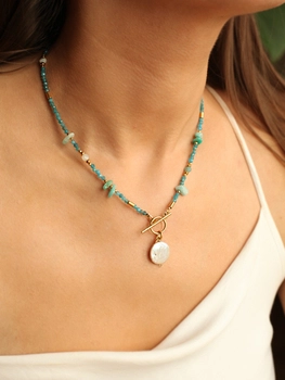 Bransoletka klasyczne zapięcie z pereł i amazonitu - złoto