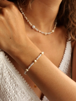 Bransoletka klasyczne zapięcie z kamienia księżycowego, chalcedonu i pereł - złoto