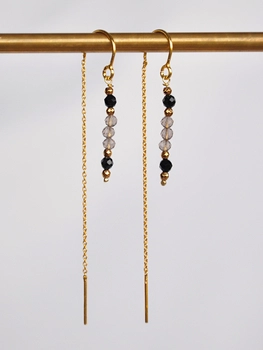 Kolczyki przeciągane z kwarcem dymnym i czarnym turmalinem - złoto