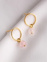 Kolczyki na biglu angielskim, z perłą, jaspisem i turkusem afrykańskim - złoto