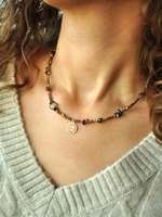 Choker z kamienia księżycowego, chalcedonu i pereł - złoty
