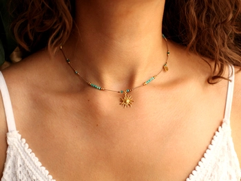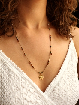 Naszyjnik z zielonego awenturynu, apatytu, amazonitu i malachitu - złoty