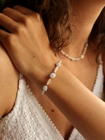 Bransoletka klasyczne zapięcie z kamienia księżycowego, chalcedonu i pereł - złoto