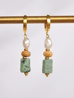 Kolczyki na biglu angielskim, z perłą, jaspisem i turkusem afrykańskim - złoto