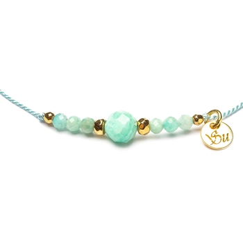 Bransoletka na nici jedwabnej z amazonitu - złoto