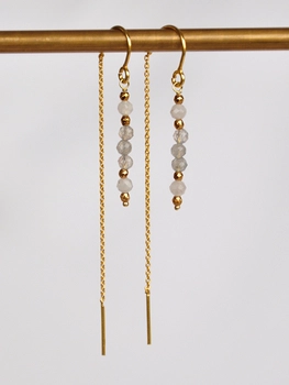 Kolczyki przeciągane z kwarcem dymnym i czarnym turmalinem - złoto