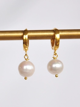 Kolczyki na biglu angielskim, z perłą - złoto