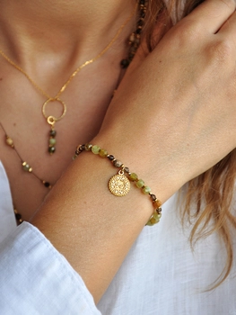 Bransoletka klasyczne zapięcie z granatu zielonego, jaspisu i kwarcu dymnego - złoto