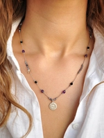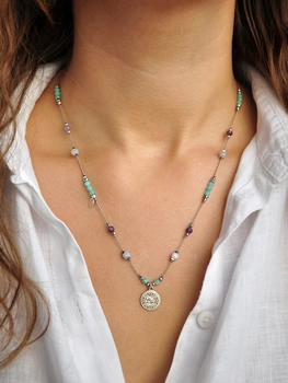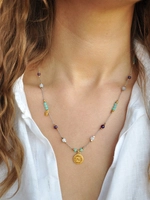 Naszyjnik regulowany z amazonitu, ametystu i chalcedonu - złoty