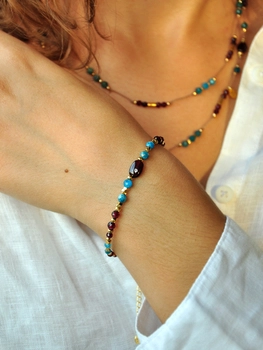 Naszyjnik regulowany z sodalitu i apatytu - złoty