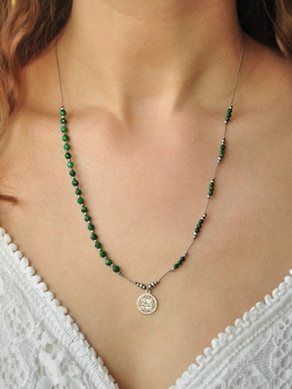 Naszyjnik regulowany HARMONIA z malachitu - srebrny