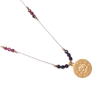 Naszyjnik SU mandala granat złoty