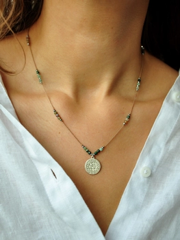 Naszyjnik regulowany ze szmaragdem i agatem indyjskim złoty