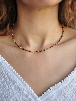 Choker z 3 odcieni granatu - złoty