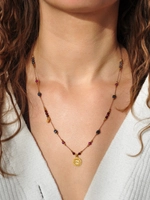 Naszyjnik regulowany z granatu, rubinu, szafiru i iolitu - złoty