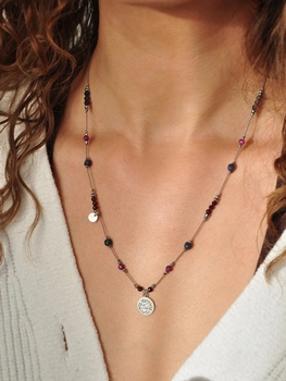 Naszyjnik regulowany z różowego turmalinu, rubinu i opalu peruwiańskiego - srebrny